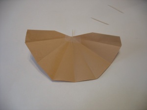 5. This will form a half circle, but some of the folds go in, and some go out. Re-fold all the folds so that they all go out.