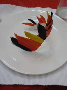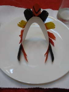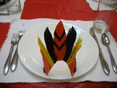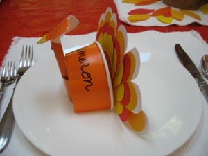 You could leave the tail feathers off, and provide pens so each guest can write things they are thankful for on the feathers, then they can each assemble the tails of their own turkey.