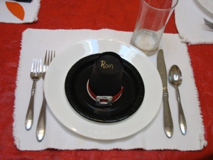 To fill the hat with candy, turn the cup right side up, and put the plate (hat brim) on the plate, and turn them both upside down.