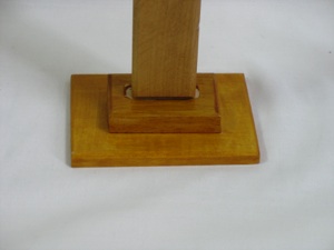 A base for the cross looks better with two squares of wood stacked on top of each other, than just one square by itself. Glue the cross on top of the base. You will need to prop up the cross to keep it straight until the glue dries. A cross is such an odd shape that it takes creativity to find items that will do this job! You could screw the pieces together instead of gluing them, but it is MUCH more complicated. See note below.
