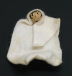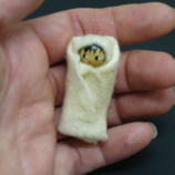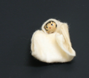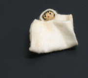To make the baby Jesus, draw a face on with a fine tip permanent marker. Cut a rectangle of white felt and glue the bead to one end. Fold the sides down around the face.