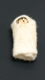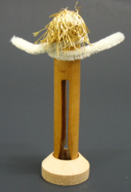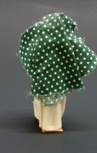 Make a dress (see instructions to the right) and oval head scarf and dress the doll. Tie string for a belt. Glue hair around the face. Hair only needs to be in the front since there is a scarf to cover the back. Hair can be made from a length of pipe cleaner, or you can buy strips of “hair” at a craft store, or cut brown embroidery thread to the desired length and glue to the head.