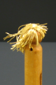 If you have an electric drill and a vise, you can drill holes through the tops of the “body” to push a pipe cleaner through for arms. If not, simply glue the pipe cleaner to the top of the body. Glue beads to the ends of the wires for hands, and bend the arms down once they are dressed. Draw faces on them, or at least eyes. Kids do NOT like faceless dolls!!