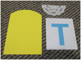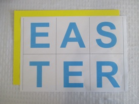 3.Fold each rectangle at the top so the margin is the same width all the way around the letter card. Fold the top edge to the back, unless you want to do something special--for example, the yellow letter cards shown above fold to the front, then have a paper doily glued on top for a special decoration reminiscent of decorated Easter eggs.
