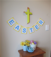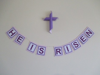 This banner proclaims the good news that tells why Easter is the most important day in all of history. Other options for words might be “Jesus is alive!” or “Hallelujah ,“ or even “Happy Day!”