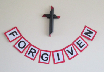 Add words to tell the story behind the cross. Although the cross is a symbol of the death of Jesus, the cross has become so common that it’s meaning has become obscure. Choose a word, or a couple of words to put the meaning back into the symbol. I have chosen the word, “forgiven” because that is what happens to each one of us when we believe what happened on Good Friday. Other words you could use might be : reconciled, cleansed, Jesus died for me, God so loved the world,