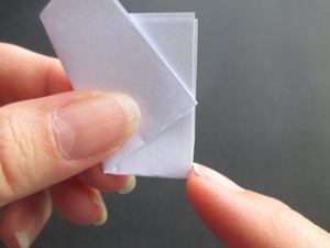 Fold the bottom layer onto the top layer--it looks like a small triangle.