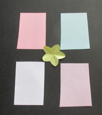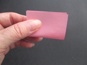 Cut any color of paper 2 inches by 3 inches (5x7 cm.) Make them smaller for smaller flowers, and larger for larger flowers. Just keep the same dimensions. If you are making lots of flowers, cut the rectangles with a paper cutter, or cut 3 or 4 sheets of paper at once.