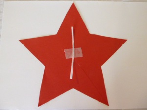 To put a decoration in the middle, such as a star, cut out the shape and then tape a wire or thread to the back of the shape. If the shape it flimsy (such as a paper napkin), glue it to a piece of paper before fastening it to the fan-shaped disc.