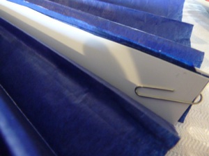 Lay the newly folded tissue paper (with the strips of poster board sandwiched between), flat against the unfolded paper.