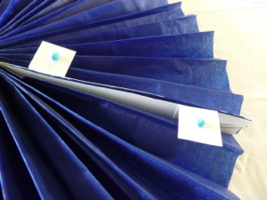 Use mounting putty (Sticky-tack, Plastitak or Blue-tack) to hang these decorations on the wall so as not to pull the paint off of the wall. JUST BE CAREFUL NOT TO GET ANY PUTTY ON THE TISSUE PAPER OR IT WILL TEAR IT AND RUIN THE DISC. I had to completely throw away my first disc because I didn’t know this.