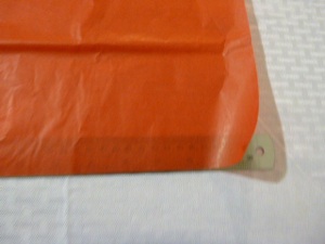Pull the bottom ruler out from between the layers of tissue paper, then slide it back under the unfolded tissue paper.