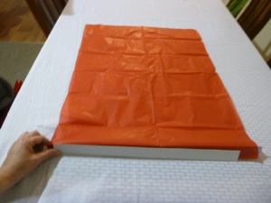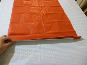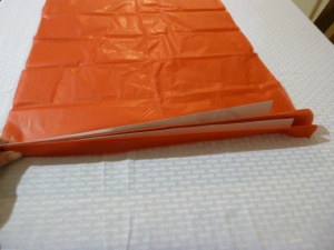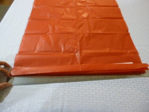 You will need 3 rulers that are as long as the width of the paper, or 3 strips of poster board (or thin cardboard.) Cut each strip the width you want each rib to be. About an inch (2 cm.) is good for these large sizes. In the photos, 2 poster board strips were cut the same size as the metal ruler.
