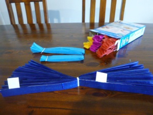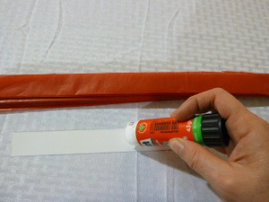 Glue one half of each strip to the strip of poster board glued to the tissue paper.