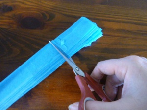 Fasten the folded tissue paper in the middle--you can use wire, such as twisties, or thread.