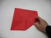 While you have it in a triangle, fold it in half once so you know where the middle of the paper is. Open it all the way to a square, and folds should form an “X”--where the two folds intersect is the middle point.