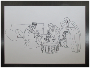 Note: Use wisdom about whether to use this part of the story or not--for younger children, it may be better to leave off these last three pictures, and end the story with the wise men giving gifts.