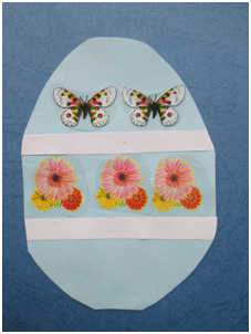 Print out the version that has a blank egg shape. Use stamps, or stickers, or markers to draw designs on the egg-shaped cover.