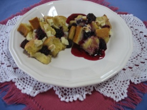 I think this is SO yummy--it is my favorite Easter breakfast! It’s like baked french toast, but instead of dipping the bread in the egg mixture (add a little sugar), cube the bread, then mix it in the egg mixture. Sprinkle in frozen berries (I like a combination of blueberries and raspberries) at the last minute, or else they melt and turn it gray--which is not a bad thing, since it is supposed to be a rock! Scoop it out with a measuring scoop or large spoon onto a baking sheet--plan on one or two per person. Sprinkle with sugar and grated white chocolate or white chocolate chips. (The sugar makes the top nice and crispy as it bakes.) Bake for about 10-15 min, (depending on the size). in a 350 degree F oven, or until the tips that stick up are crispy. Sprinkle with powdered sugar or berry syrup or just eat plain. For a casserole version, dump it all into a casserole, but it will take about a half hour to bake.