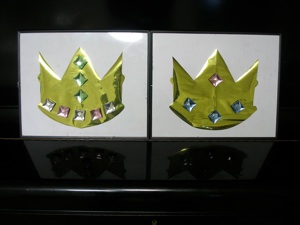 Cut out a gold or yellow paper crown for each team. Buy enough magnets that look like jewels for each team to put a jewel on the crown for each correctly answered question.