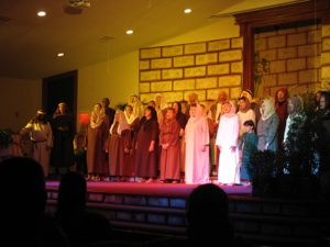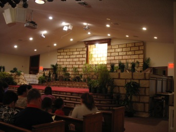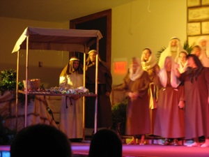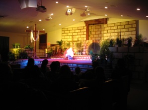 A nursery loaned the live plants to the church for the production. It made the simple backdrop seem a bit nicer.