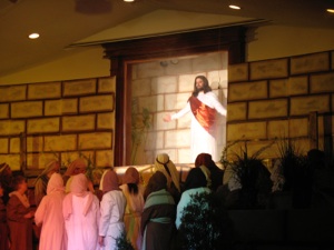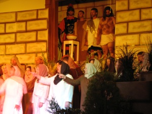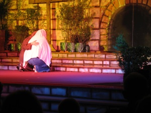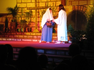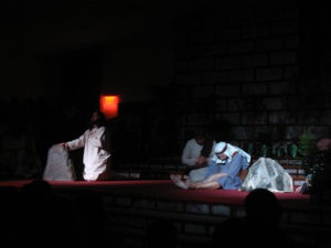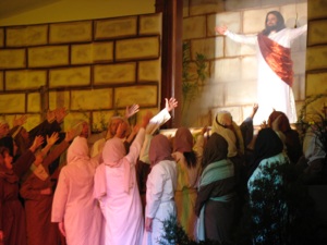 The baptismal is used in yet another scene change to depict the ascension. I thought it was quite impressive how they were able to effectively portray so many scenes with a single background!