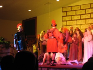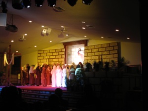 A musical can be a good option for a church to put on for Easter. First, music can have a stronger emotional impact than words alone. Second, the audience is not expecting a super talent the way they would for a concert, so average choir members can sing together to make a nice musical production. With lots of musical numbers, more time is spent listening to music, with just bits and pieces of acting in between to keep the story line moving, so it is not so obvious if the actors aren’t ready for Broadway. Putting on a musical does require LOTS of practice for LOTS of people, so the church needs to really want to do this!