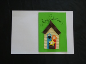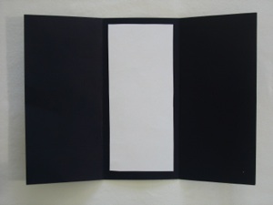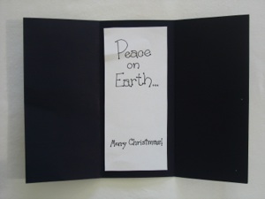 Write a Christmas message onto a piece of white or lighter colored paper and glue it into the middle panel. Another option is to write the message with a pen especially made to draw on black paper.