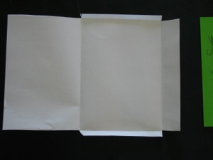 1. This envelope is made for cards that have been folded in half or thirds, but are not trimmed. Lay the card about one inch from the right side, and lined up with the top and bottom (there is no room for side flaps.)
