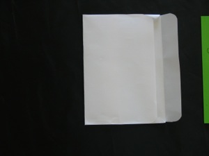 1. This envelope is made to fit the exact size of the card. Lay the card about one inch from the right side, and centered between the top and bottom.