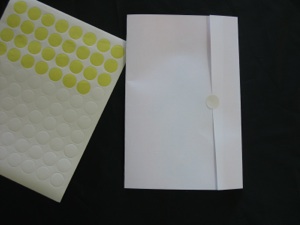 5. Use stickers the same color as the paper to seal both open ends--half of the sticker on the front, and half on the back. 3 stickers were used on one end in the photo.
