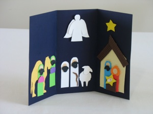 Sunday School > Crafts > 3 Paper Nativity Crafts > Nativity Scene Christmas Cards and Envelopes