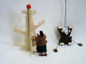 For telling the story about Zacchaeus, buy a wooden tree for a Bible action figure to climb and sit in, or make one out of cardboard. Or make a tree out of green and brown paper and fasten to a wall or bulletin board. Buy a monkey climbing toy at a hundred yen store and paste a picture of a man’s face over the monkey face. Let the children take turns making Zacchaeus climb the tree. They could each make their own climbing Zacchaeus during craft time.