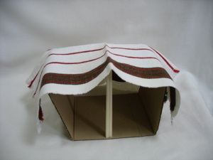 Make a miniature tent out of cardboard box covered with a placemat or kitchen towel. Use a pencil or disposable chopsticks for a tent pole.