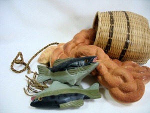 However, it would be WAY more fun to have 5 dinner rolls and 2 dried fish, or fish sticks, and really break them up, and see if the whole class can eat some. Then ask them if they are full. Be sure to have a stack of baskets to pick up the leftovers, (of course there won’t be any) to drive home the fact of how amazing this miracle was.