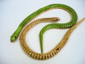 These snakes move like real snakes if you hold it by the tail and gently tilt your hand to the right or left. The green one cost 500 yen at a gift shop--so if you ever see one at a hundred yen store (the brown snake) buy it right away! They probably won’t be selling it when yo need it!