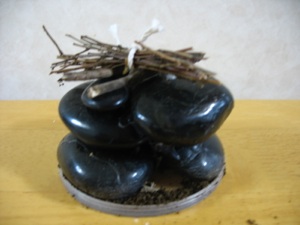 Glue rocks together--it helps to glue them to a base. For an altar, add wood bundles on top. For a memorial, make sure you use 12 stones if that is how many are called for--the children will have fun counting them to make sure you did it right. (Stones are sold at some hundred yen stores in the gardening section.