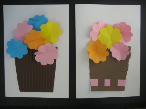Note: Save time by cutting everything ahead of class, and just have the kids assemble the flower baskets. Another option is to use flower stickers.