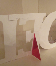 Fasten the front layer and back layer together with foam-style double stick tape, or make your own “connecters” out of paper: cut 3 or 4 strips for each letter out of copier paper 1/2 x 3 inches long.