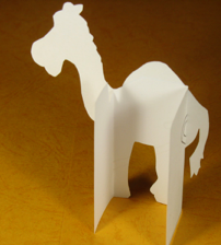5.The stands for the sheep, manger, donkey and camel should be as tall as the figures (not including the heads), then cut out the bottom of the middle section.