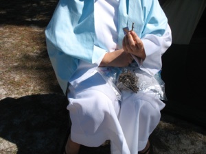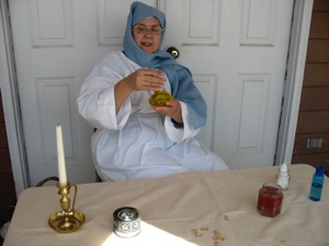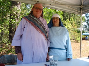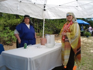 This booth is to commemorate the last supper. They serve unleavened bread and horaseth (mixture of apples, nuts, and cinnamon. Yum!) Don’t you love her costume? They had just enough time to set out more food before the next group to arrives.