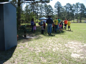 These ladies told the story of Jesus washing the disciples feet. They provided a bowl of water to let the children wash their hands, and provided paper towels to dry them. It would take longer, but they could have the children take their shoes off and wash their feet instead.