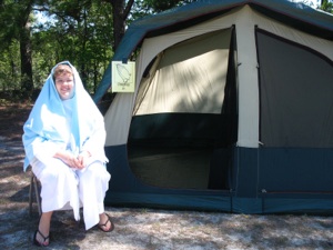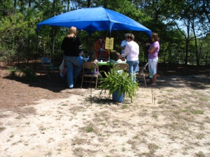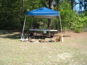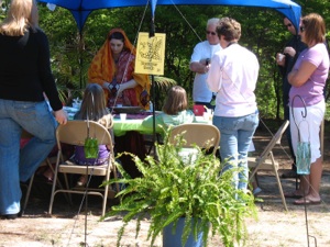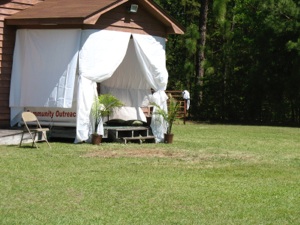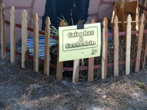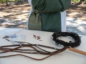 This is the booth where the children hear the story of Jesus’ 3 trials. This gentleman made his own scourge and crown of thorns. He made the crown of thorns--first he made a vine wreath out of wild vines found in the woods. Then he glued wooden toothpicks into the vine wreath. Then he stained the whole thing so it would all be the same color. Brilliant!!