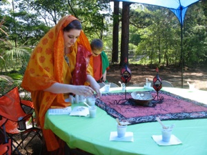The next place is set up like a bedouin tent. The person tells the story of how the woman anointed Jesus’ feet in preparation for his burial. They get a dap of perfume, if they want it, and get a stamp for their passport.