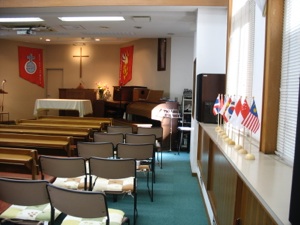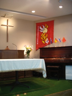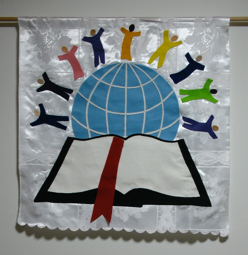Banners make good decorations for a church. They are big enough to cover a large wall, and not too hard to make if the design is cut from felt and glued on to a background. There are books of designs in some American Christian book stores. These banners were made from designs in the book below.