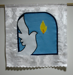 This banner represents the coming of the Holy Spirit. It can be added to the above banners the week after Easter, and could even be left up until Pentecost. Or it could just be hung for Pentecost.