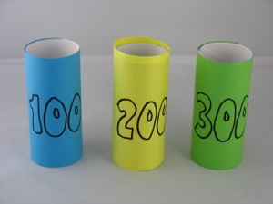 Cover toilet paper tubes with colored paper and write numbers for a score. Another option is to draw monsters on them. Topple them over with a rubber band gun.