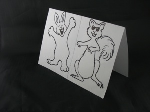 4.Cut the eyes and mouth out of white paper, the 2 noses from another color of paper, and the tongue from red paper.