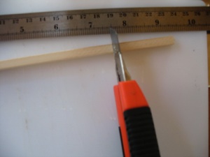 If you have a saw, measure the last stick, and cut it in thirds. If you have a box cutter, cut the the last stick on all sides since it won’t cut all the way through.