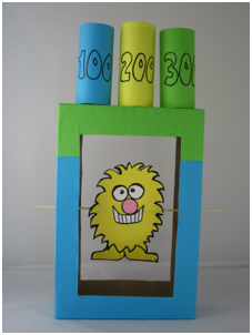 11. Shoot the monster with your rubber band gun so the monster spins around and “turns color.” You can even make a sound that the monster might make when he is hit with the rubber band--”Oof!” or “Ow!”